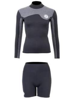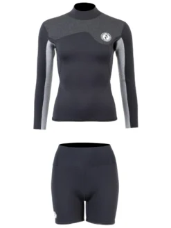 Two Bare Feet Womens Aspect Back Zip 2.5mm Wetsuit Jacket & Hotpants Set (Black/Grey)