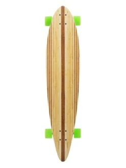 The Deacon is a mid range 40 inches long, 9.5 inches wide but has a shorter 28 inch wheel base so gives the swallow tail a longer over hang. Very, very, minimal flex offers the best response and feedback of our bamboo range and the similarly mild concave gives a smooth and surfy, carve feel to the ride that is easy to control. You’ll love the ease which this board cruises and will make you fall in love with its’ ride.