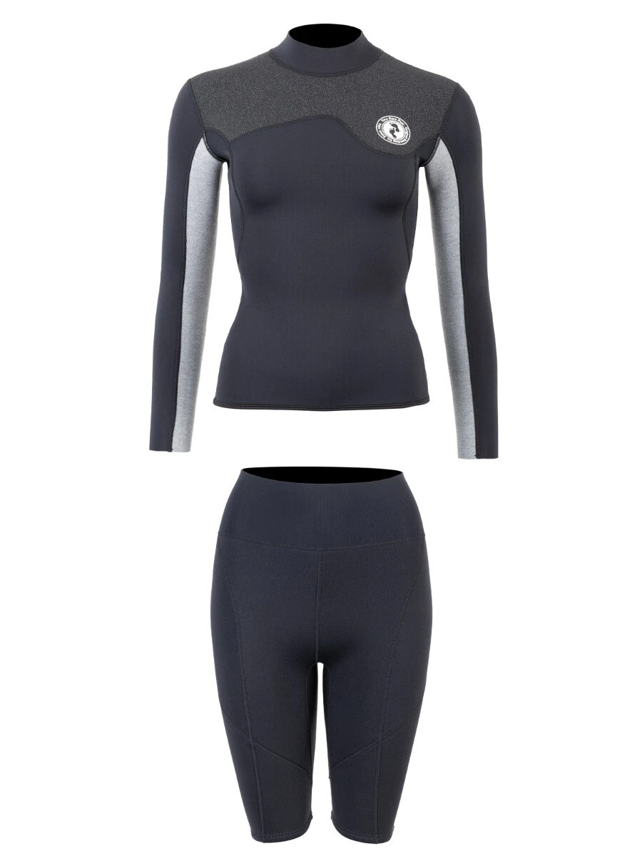 Two Bare Feet Womens Aspect Fleece Lined Zipless Thermal 2.5mm Superstretch Wetsuit Top & Shorts Set (Black/Grey/Grey)