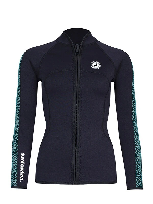 Two Bare Feet Womens Silicone Print Series 2.5mm Wetsuit Jacket & Pants Set (Black/Mint)