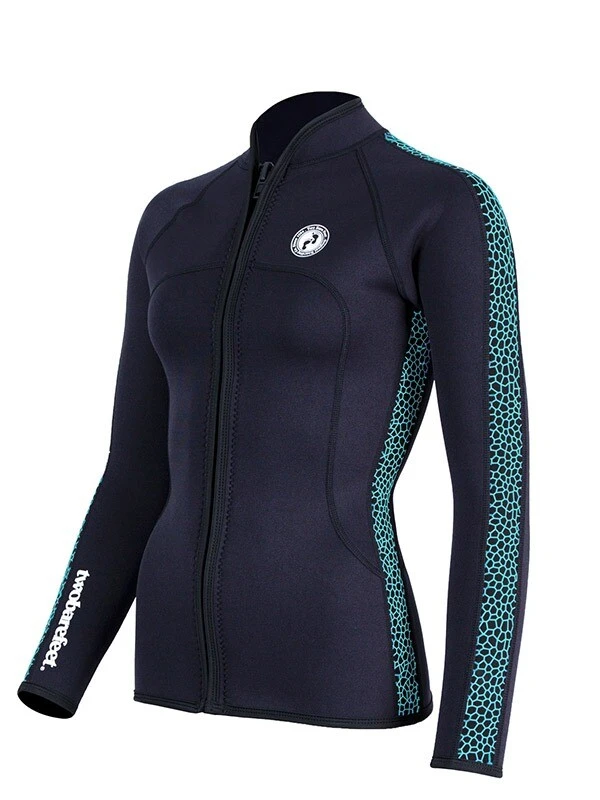 Two Bare Feet Womens Silicone Print Series Full Zip 2.5mm Wetsuit Jacket (Black/Mint)